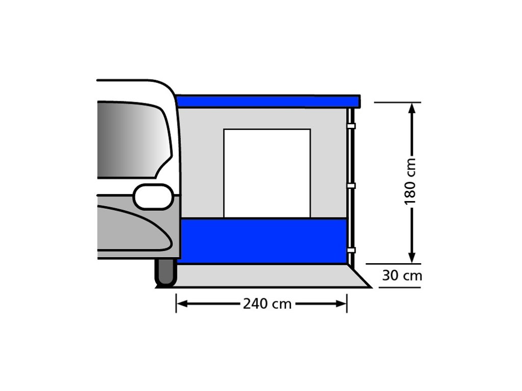 Tato boční stěna je vyrobena z kvalitního 1,7 mm silného Polyesteru All Weather Tex, který je potažen vrstvou PE. Tento materiál je odolný proti vodě a zároveň chrání proti vzniku plísní, což zaručuje dlouhou životnost stěny i při častém používání. Ať už kempujete v deštivém počasí nebo potřebujete ochranu před vlhkostí, materiál této stěny vám zajistí spolehlivou ochranu a komfortní pobyt.