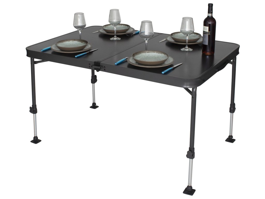 Stůl Revel je vybaven masivními vzpěrami pod deskou, které zajišťují dokonalou stabilitu a odolnost. Tyto vzpěry lze aretovat, což poskytuje dodatečnou bezpečnost při používání stolu. Hliníkový rám a deska jsou nejen lehké, ale i velmi pevné, což činí tento stůl ideálním pro časté používání v náročných venkovních podmínkách.