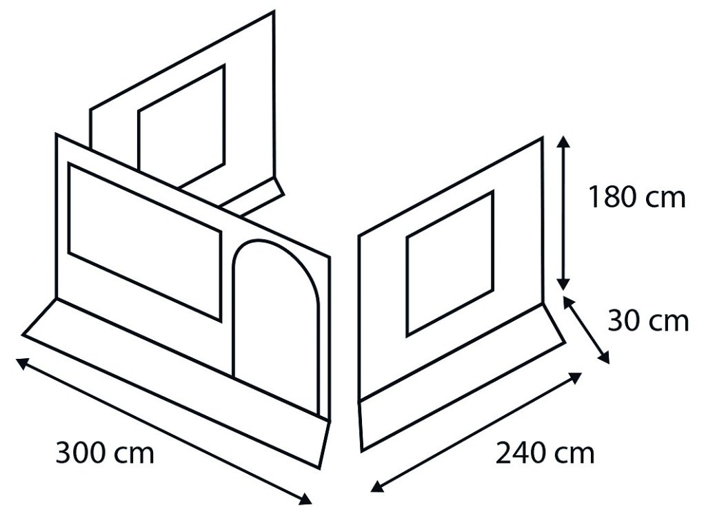 | Rozměry předního dílu: | 260x180+30cm / 300x180+30cm |