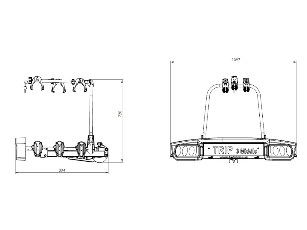 HAKR Nosič kol na tažné zařízení Trip 3 Middle