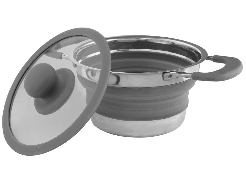 Skládací design pro úsporu místa: Tento hrnec je vybaven silikonovou střední částí, která umožňuje skládání hrnce do velmi kompaktních rozměrů. Po složení je hrnec o polovinu menší, což usnadňuje jeho uskladnění a přepravu v batohu nebo v autě. Ideální pro kempování, na cesty, nebo do malých kuchyní s omezeným prostorem.
