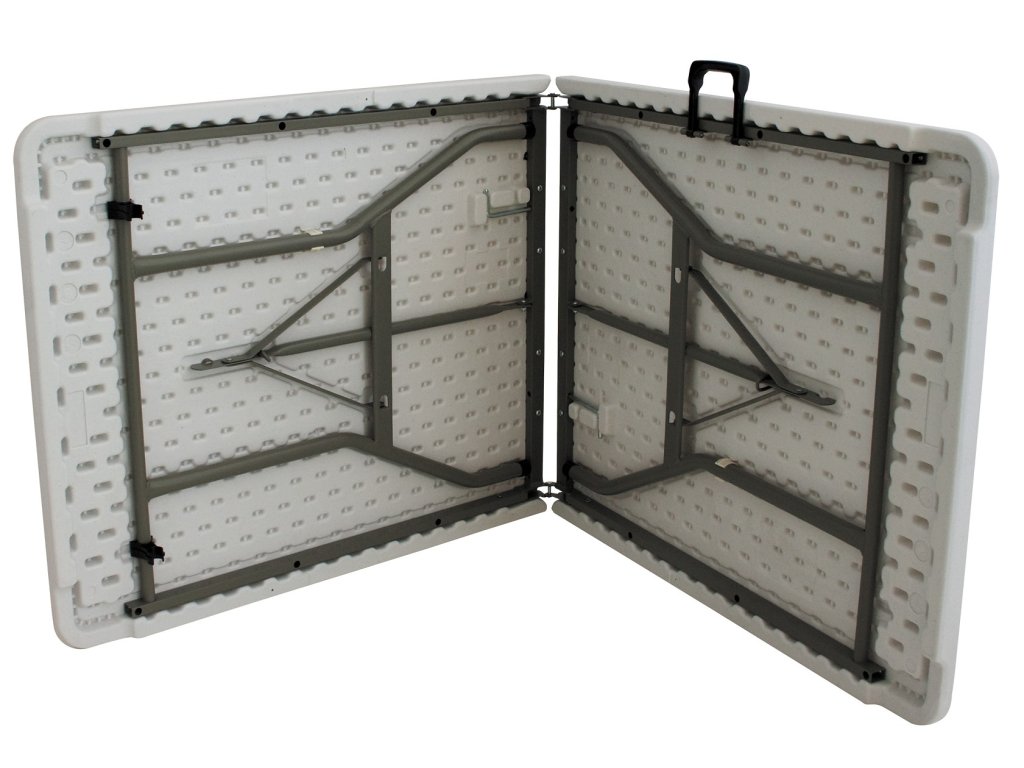 Další vynikající vlastností tohoto stolu je jeho kompaktní velikost po složení. Stůl lze jednoduše rozložit a složit napůl, čímž vznikne úsporný kufr, který je snadno přenosný díky praktickým uchytům. Ať už ho potřebujete vzít do kempu, na grilování na zahradě, nebo přenášet do garáže, tento stůl nezabere mnoho místa a jeho přenášení je velmi pohodlné.
