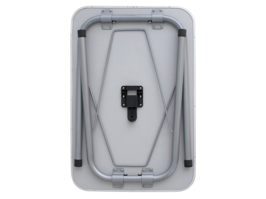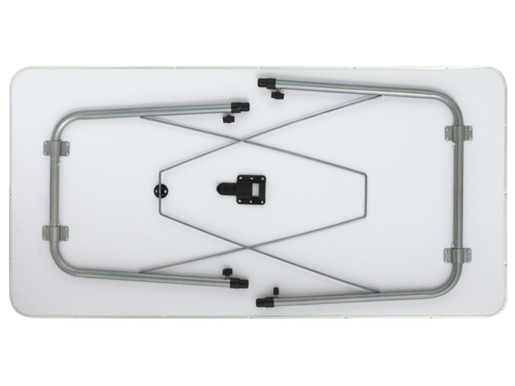 Stůl má nízkou ocelovou konstrukci (průměr 19 mm) ve tvaru X, která zajišťuje vynikající stabilitu a odolnost. Tento design dává stolu nejen pevnost, ale i moderní vzhled, který se hodí do jakéhokoliv kempingového prostředí.
