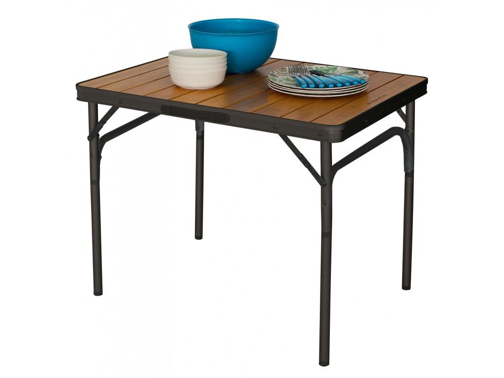 Vrchní deska stolu je vyrobena z kvalitního voděodolného bambusového materiálu, který je odolný vůči vlhku a dešti. Bambus je nejen velmi odolný, ale i ekologický materiál, který dodává stolu moderní a přírodní vzhled. Tato deska je ideální pro venkovní použití, protože odolává povětrnostním vlivům a je snadná na údržbu. Díky své voděodolnosti je stůl perfektní volbou pro kempování v různých podmínkách – i v deštivých dnech se nemusíte obávat poškození povrchu.