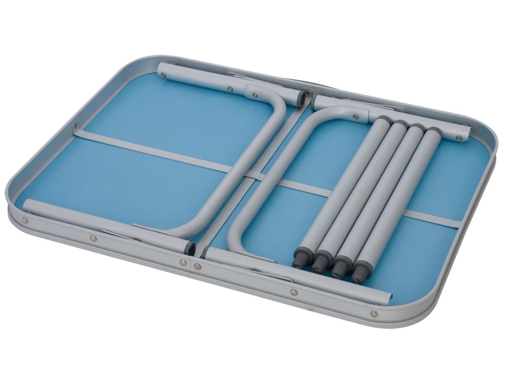 I přesto, že je stůl velmi lehký, jeho konstrukce je pevná a stabilní díky hliníkovým nohám a šroubovacímu mechanismu. Nohy stolu jsou složeny ze dvou oddílů, které je možné snadno odstranit, což usnadňuje skladování a transport. Tento odnímatelný design zajišťuje, že stůl můžete snadno složit a uložit bez jakýchkoliv problémů.