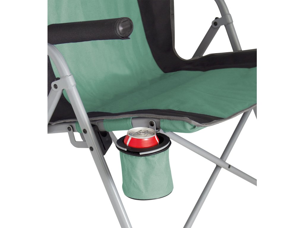 Židle je vybavena integrovaným držákem na pití, což je ideální pro relaxaci při kempování nebo grilování. Už nikdy nebudete muset vstávat, abyste si vzali nápoj – vše máte po ruce. Židle je navíc navržena tak, aby byla kompaktní a snadno přenosná. Po složení ji můžete pohodlně uložit do přepravního vaku, který je součástí balení. Tento vak má popruh pro snadné nošení, což znamená, že židli můžete vzít kamkoli – na kempování, na festival, nebo prostě na relaxaci do přírody.