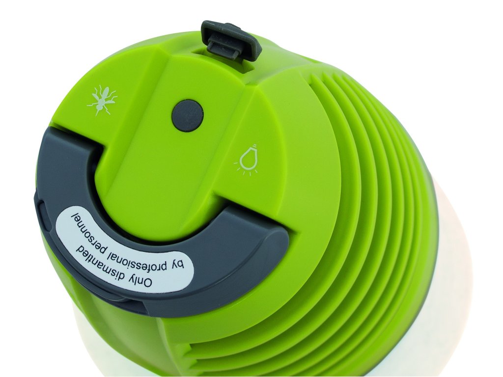 Lampa je kompaktní, s rozměry ø 9,2 x 14,5 cm, což znamená, že ji snadno umístíte kamkoli. Její nízká hmotnost 222 gr zaručuje snadné přenášení. Díky vlhkuodolnosti (IP44) je lampa vhodná pro použití nejen v interiéru, ale i venku, a to i za mírného deště nebo vlhka. Můžete ji použít na zahradě, před stanem nebo v přístřešku, kde vám poskytne efektivní ochranu před hmyzem.