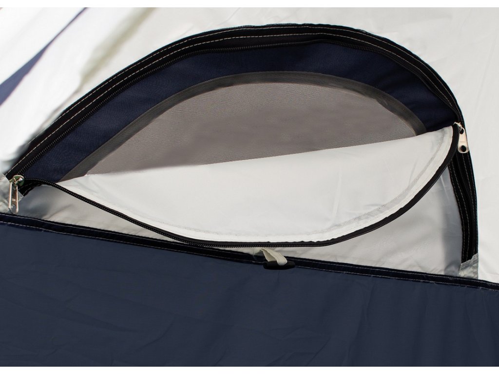 Vstupní dveře a větrání: Stan je vybaven velkými vstupními dveřmi, které zajišťují snadný přístup a odchod. Kromě toho má 2 uzavíratelné větrací otvory ze síťoviny, které zajišťují ideální cirkulaci vzduchu, minimalizují vlhkost a pomáhají regulovat teplotu uvnitř stanu.