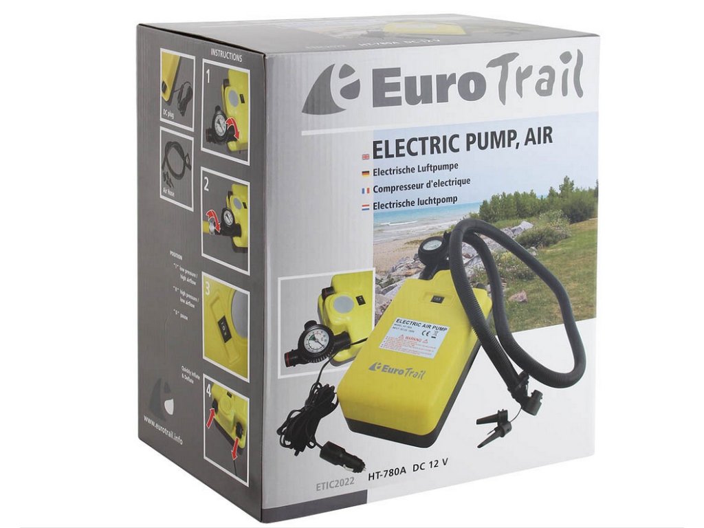 Elektrická nafukovací pumpa – ušetří námahu – postačí přístroj zapojit do zásuvky na 12V a lehátko či matrace se sama nafoukne nebo také snadno vyfoukne - 2 funkce. Včetně 3 adaptérů s různým průměrem. Rozměry: 16,5 x 26,5 × 11,5cm.