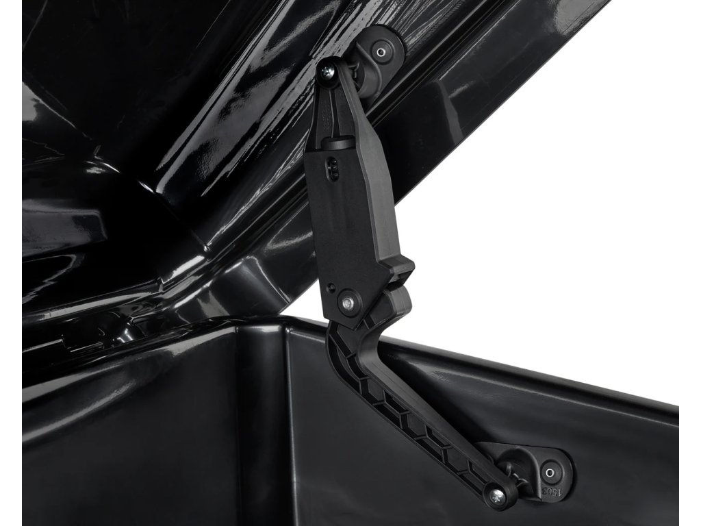 Box nabízí široký úhel otevírání, který umožňuje pohodlné nakládání a vykládání výbavy. Samozřejmostí je uzamykatelný systém pro bezpečné uložení vašich věcí.