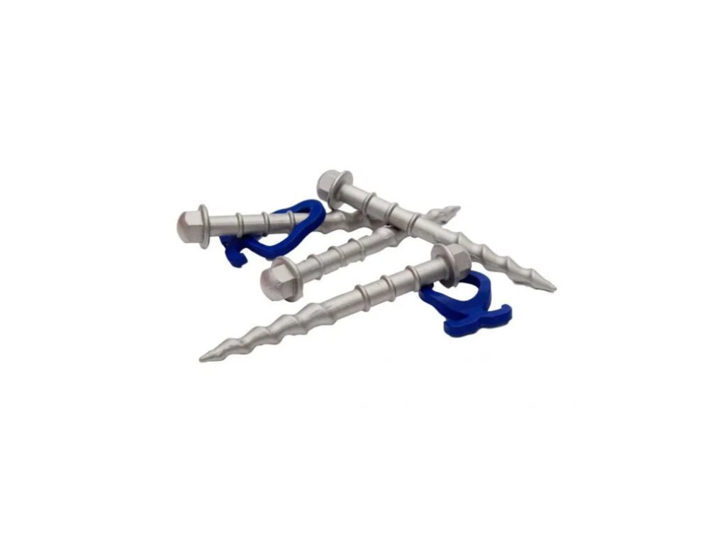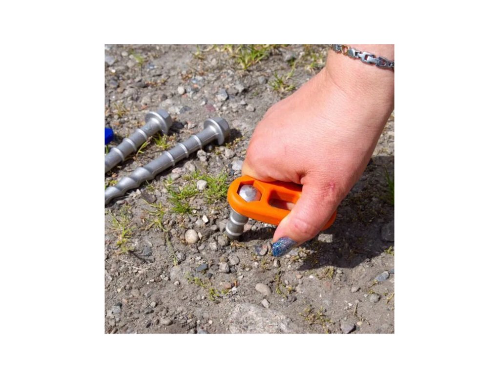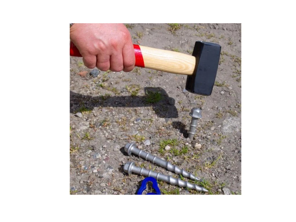 - Pro demontáž těchto kolíků je stačí vyšroubovat. Tento typ kolíků je vhodný do měkčího (travnatého) nebo písčitého podkladu, stejně tak do kamenitého terénu.