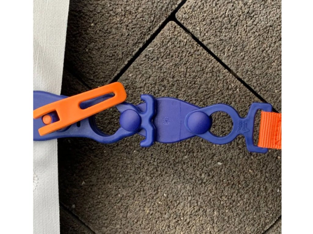 - U-konektor spojí PeggyPeg krokodýla s popruhem k markýze.
