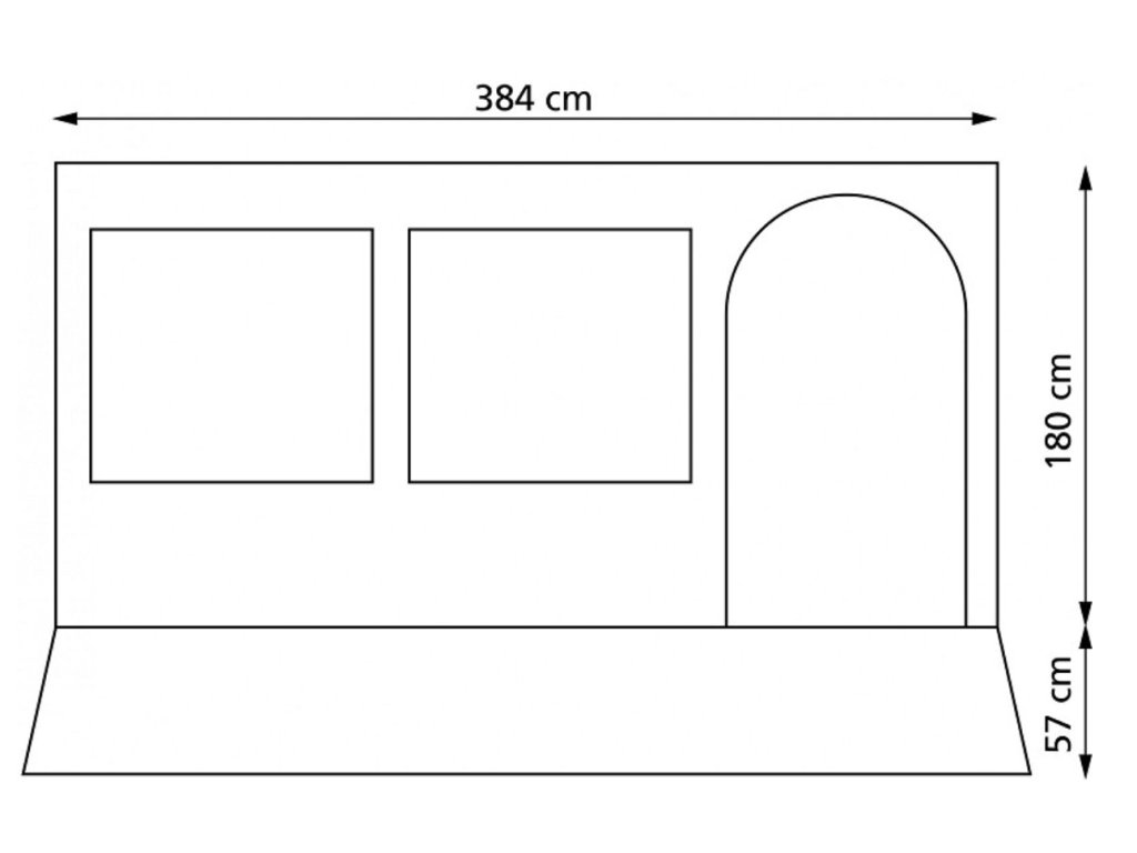 - Přední stěna: 384 cm (délka) x 180 + 57 cm (dešťový límec)