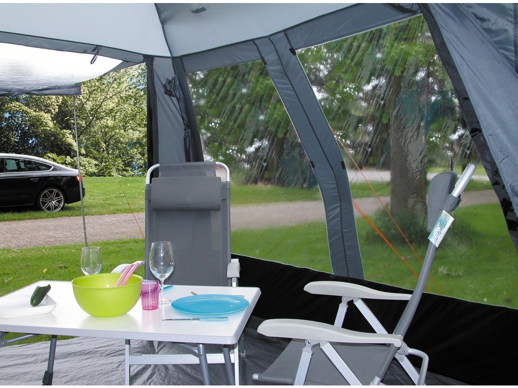 S rozměry 280 cm (délka) x 300 cm (hloubka) nabízí předstan Hockenheim dostatek prostoru pro až 4 osoby a jejich kempingové vybavení. Vnitřní prostor je dostatečně velký pro umístění stolu, židlí nebo dokonce malého lůžka pro relaxaci a odpočinek po celodenním dobrodružství. Díky velkým oknům se můžete těšit na svěží vzduch a otevřený výhled do okolí.