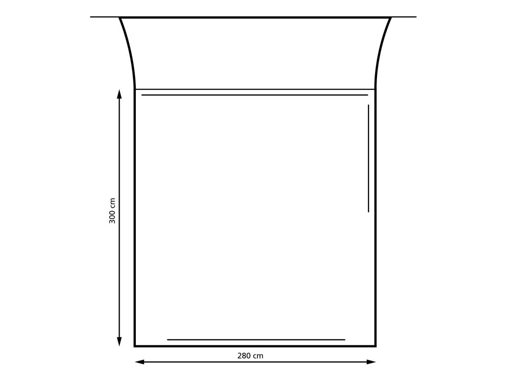 - Půdorys: 280 cm (délka) x 300 cm (hloubka)