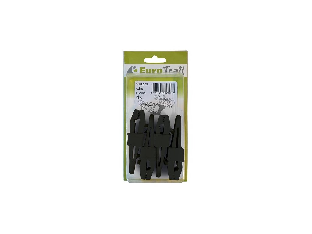 - Snadná instalace: Stačí otevřít klip, vložit roh koberce, zacvaknout a zajistit kolíkem