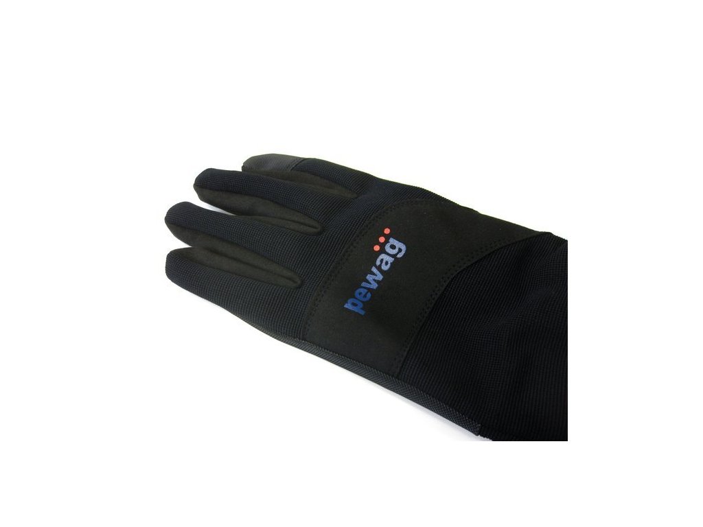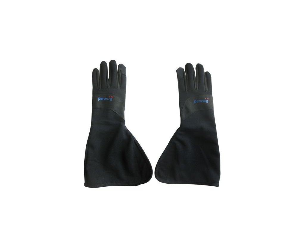 Rukavice jsou vyvinuty podle designérské předlohy Pewag s dlouhou manžetou. Kombinace materiálů elastanu, fleecu, umělé kůže a PVC zaručují komfortní pocit při nošení, ochraňují ruce a oblečení při montáži řetězů před mokrem a špínou, zároveň nabízejí protiskluzový povrch.