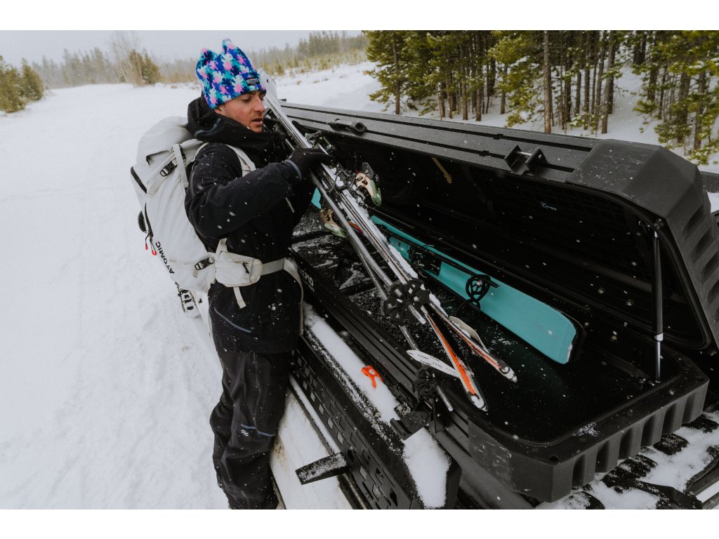 Hliníkový přepravní box s objemem 190 litrů vhodný pro bezpečné uložení lyží, snowboardů, rybářských prutů a loveckého vybavení. Obsahuje uzamykatelné západky, T-drážky po obvodu boxu, vnitřní T-drážky pro uchycení příslušenství, suchý zip na vnitřní straně víka pro rychlé připevnění a protiskluzovou odnímatelnou podložku.