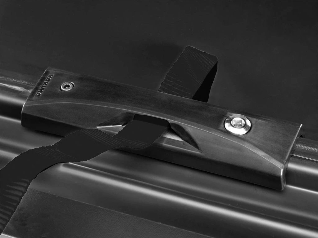 Momentový klíč po dotažení klepet umístíte do držáku na straně boxu. Samotný upínací systém je nízký, a tak neubírá prostor v boxu, což výrazně zjednodušuje manipulaci se zavazadly, lyžemi a další výbavou.