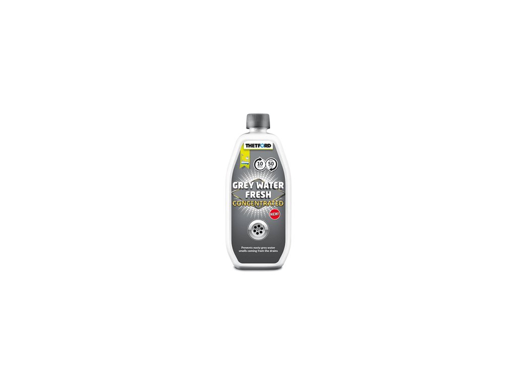 Grey Water Fresh koncentrát 0,8l - Vysoce účinná tekutina pro odpadní vodní nádrže, u kterých odstraňuje rušivý zápach. Efektivně odstraňuje usazeniny a zanechává nádrž po delší dobu čistou. Příjemná vůně. Instrukce: Dávkujte vždy, když je nádrž prázdná. Aplikujte tekutinu přímo do dřezu / odpadu v koupelně. Dávkování pro odpadní nádrže o objemu 100l. NEAPLIKUJTE do čisté vodovodní nádrže nebo do odpadní WC nádrže. Vždy vyprázdněte plnou nádrž na předem určená místa, a poté vypláchněte čistou vodou. Účinnost toho produktu je garantována do data expirace, které je na láhvi výrobku.