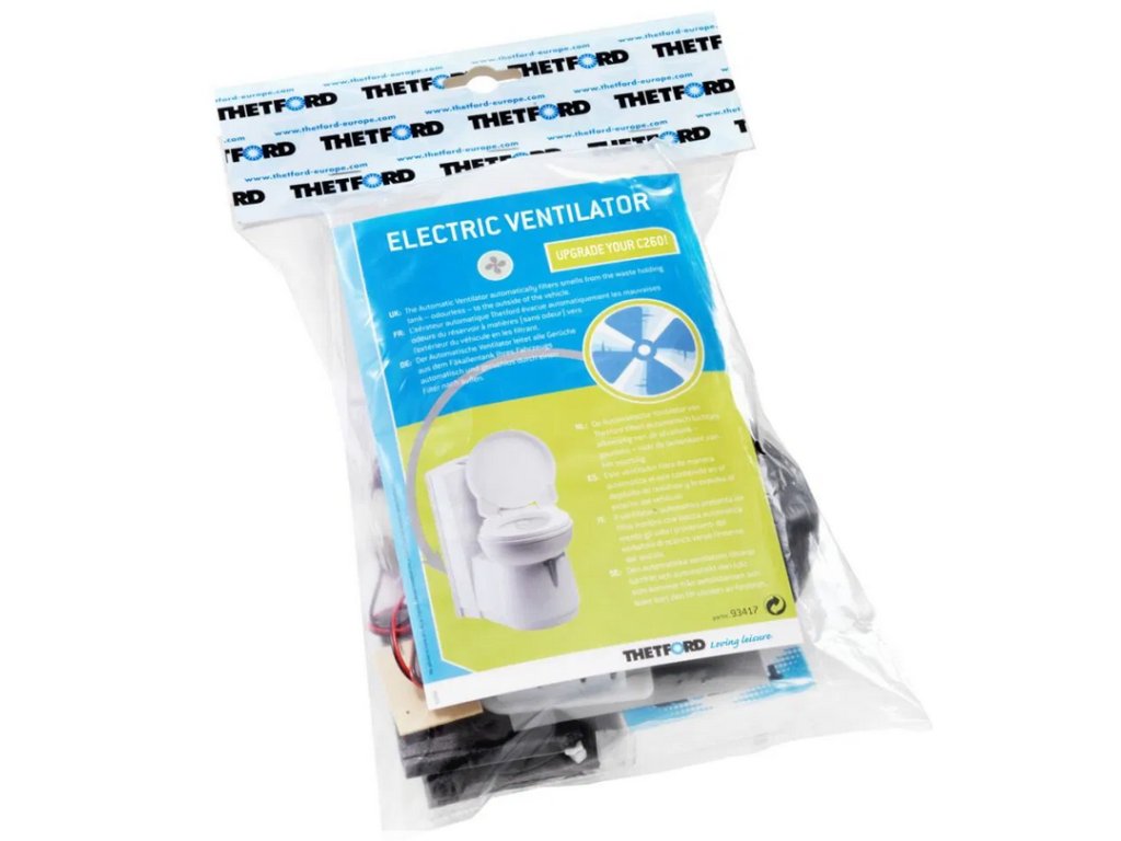 Elektrický ventilátor pro chemické toalety Thetford C250 a C260 automaticky filtruje zápachy z odpadní nádrže a odvádí je ven z vozidla. Je vybaven tichým motorem, funkcí automatického spuštění a zastavení a možností manuálního ovládání prostřednictvím ovládacího panelu toalety. Filtr je snadno vyměnitelný a zajišťuje dlouhodobý bezproblémový provoz.