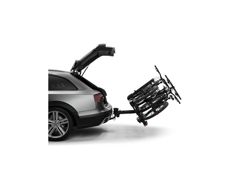Nosič je navržen tak, aby zvládl i těžká kola, a to i díky vysoké přepravní kapacitě a širokému rozestupu mezi držáky plášťů, který umožňuje přepravu robustních jízdních kol s velkým rozvorem. Montáž kol je snadná díky odnímatelným ramenům s utahovacími knoflíky Thule AcuTight, které při dosažení optimálního utahovacího momentu cvaknou. Ramena pro kola lze také uzamknout, ale pro vyšší úroveň ochrany proti krádeži doporučujeme použít zámek Thule Cable nebo jiné vysoce kvalitní kabelové zámky.