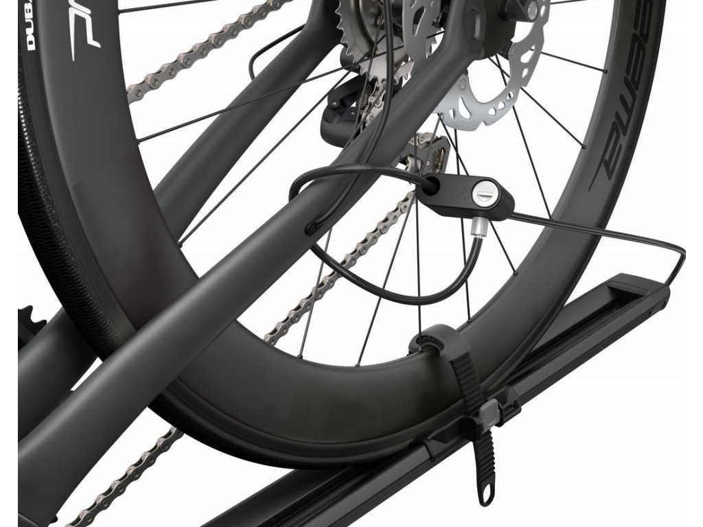 Snadná a praktická instalace vidlicového adaptéru umožňuje bezpečné nastavení podle typu kola. Pro zvýšení bezpečnosti lze kolo uzamknout k nosiči a nosič ke střešnímu nosiči, čímž se minimalizuje riziko krádeže.