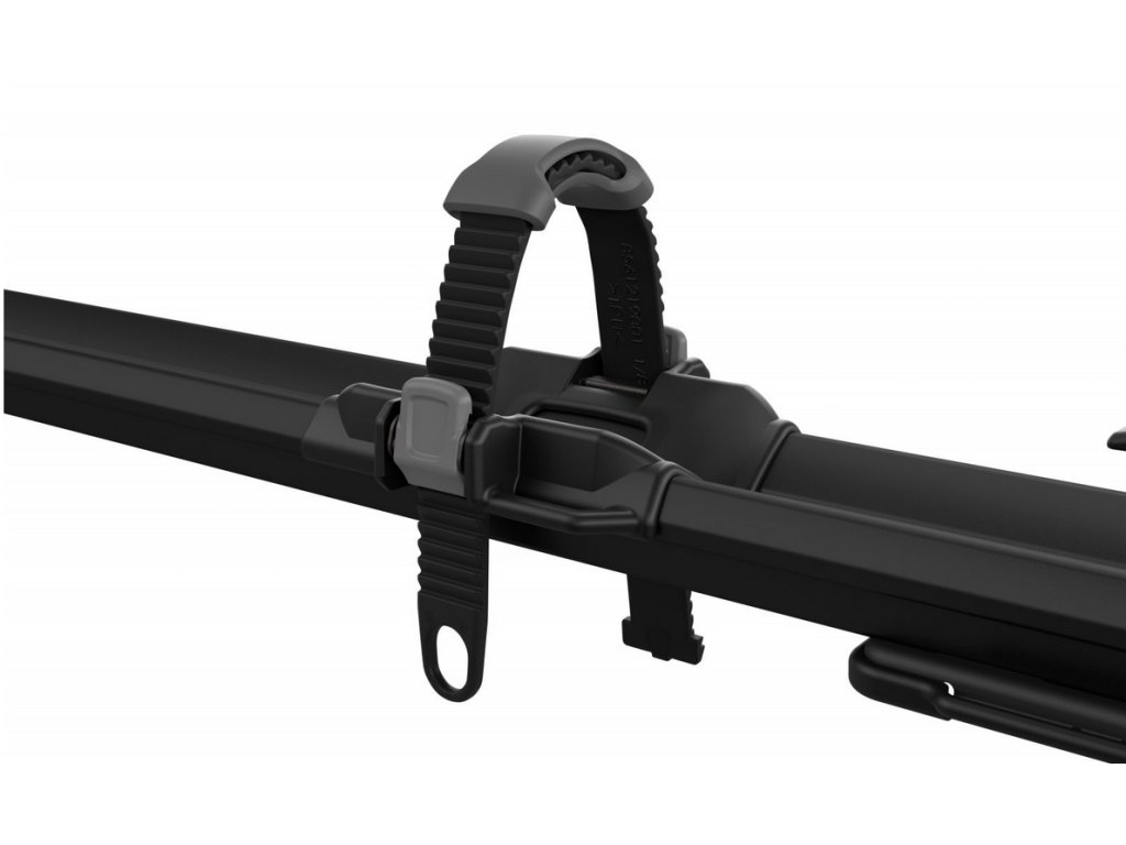 Kolo lze uzamknout k nosiči a nosič k střešnímu nosiči pro zvýšenou bezpečnost. Nosič umožňuje snadnou změnu polohy z jedné strany vozu na druhou a je kompatibilní s většinou nosičů Thule a kruhovými tyčemi. Nastavitelný ochranný řemínek zajišťuje bezpečné upevnění zadního kola.