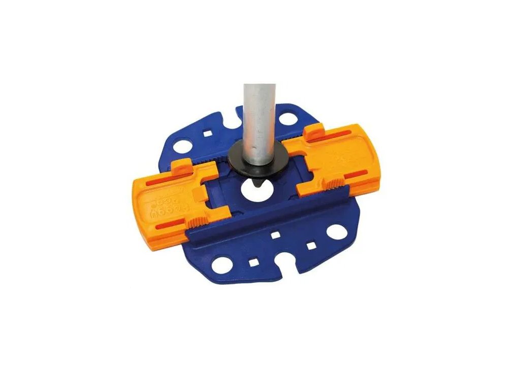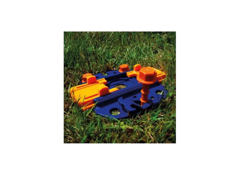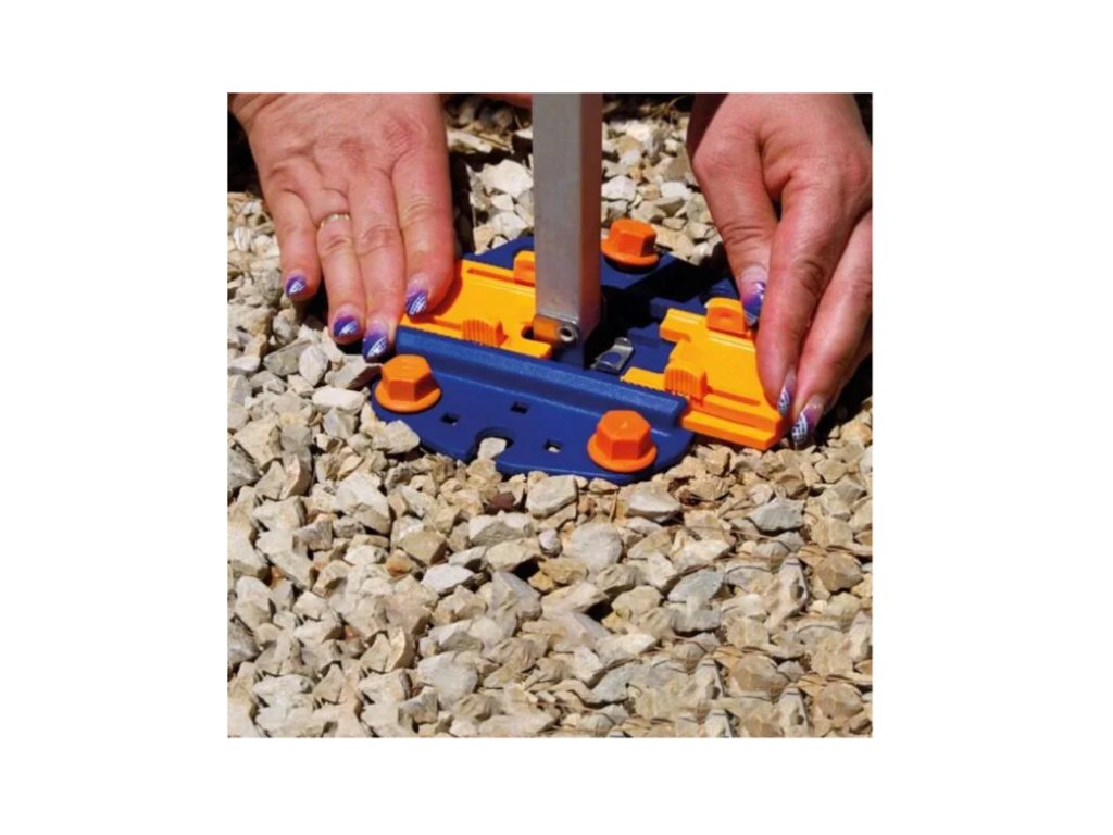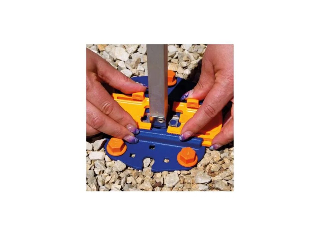 Upevňovací podložka pro přístřešky, nohy markýzy – touto podložkou lze uchytit jakoukoli tyč od přístřešku nebo nohy rozvinuté markýzy – tedy jakoukoli tyč, která se kotví do země.