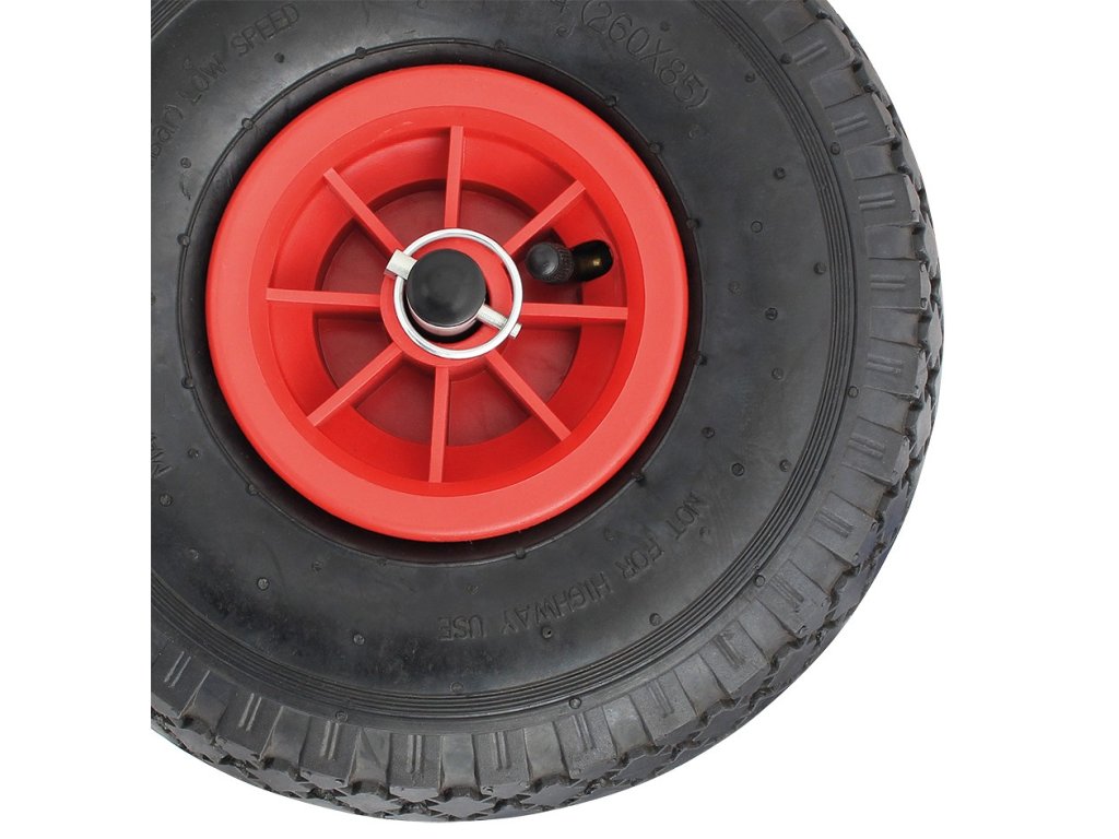 Vozík je vybaven nafukovacími koly, která zajistí pohodlnou jízdu i po nerovném terénu. Kolonizace s nafukovacími koly zaručuje pohodlnou manipulaci, a to i na místě s pískem nebo trávou. Vozík je navržen tak, aby byl lehký a snadno přenosný, což vám usnadní převoz, ať už do auta nebo na jakékoliv jiné místo.